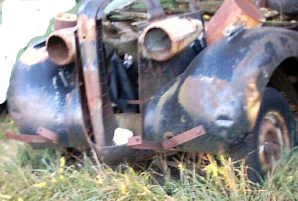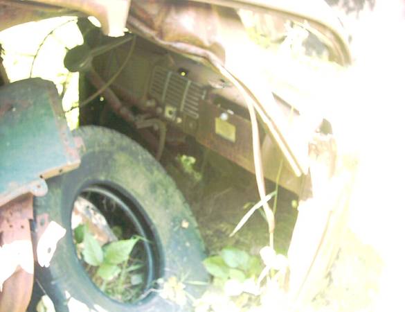 1937 Buick Chassis Frame with Old motor in it,front fenders, grill shell, headlight buckets, steering column, rear bumper, and on 3 wheel rims with old flat tires,and also a Firewall with Steering wheel assembly, Dash, No title, would make a great Rat-Rod project, as is $650. Cash, located west Lincoln