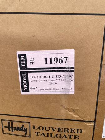 “Hardy” brand Chevy Pickup Louvered tailgate. New still in box. Model # 11967 TG CL 2518 Chev/GMC. 1/2ton , 3/4 ton, 1 Ton 2007 thru 2010 models This is a metal louvered tailgate. Very heavy duty