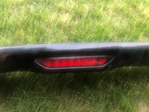 Rear liftgate spoiler with third brake light from a 2016 Jeep Grand Cherokee Overland. The spoiler has the original black paint which is PXR = Brilliant Black Crystal Pearl. There are a couple of small scratches in the paint, but the third brake light works perfectly. This part should fit a WK2 Jeep Grand Cherokee which is years 2011 to 2021.