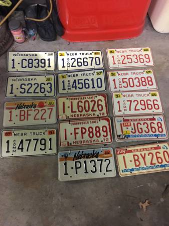 Cheap old nebraska and some Iowa license plates, $40 pair and UP, depends on rarity, canbe registered to cars and trucks 30 years and older, if not sure what you need CALL , inventory changes DAILY , so call or text with the year vehicle you have and i can help! thanks