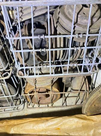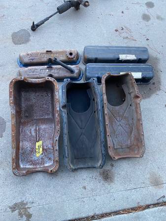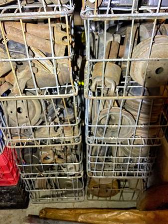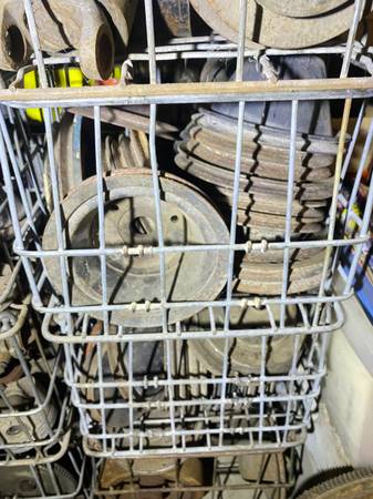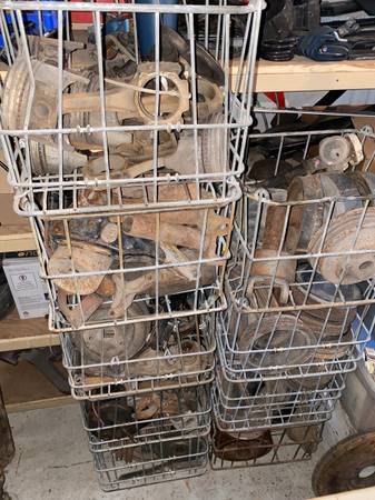 Crates full of Engine Pulleys , harmonic Balancers, Flywheels, flexplates, slip yokes, drive shafts, engine brackets, exhuast manifolds, heads, rockers, head bolts, oil pans, timing covers, Distributors, camshafts/ Lifters, Crankshafts, you name it i probly got it.Calls best
