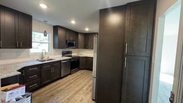 Charming and cozy 3 bedroom, 1 bath home with new everything and a fenced yard! New roof, new siding, new windows and doors, new high-efficiency furnace and air conditioner, new hot water heater, all new electrical panel and wiring, new kitchen cabinets w/granite countertops, all new stainless steel appliances, including French door refrigerator, stackable washer dryer combo, bathroom has all new tile and whirlpool bathtub. all new plush carpeting and paint throughout. Garage w/garage door opener and a shed attached to the rear of the garage for more storage. This is an incredible house! You must see it to appreciate it.