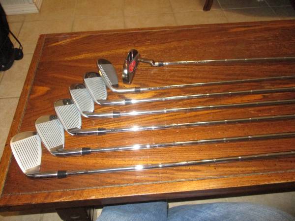 Brand new RH men's Forgan St. Andrews irons: #6,7,8,9,PW,SW, plus Putter. Trons have stiff flex steel shafts. Driver has 9.5 degrees loft; #3 FW Wood; #3, #4, and #5 Hybrids. Woods and Hybrids have stiff flex graphite shafts. 12 Total clubs. New Stand Bag.