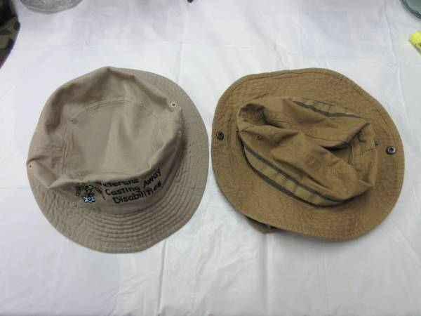 9. 1-Left New Boonie Hat Veteran's Casting Away Disabilities 1-tan-size Large & 1-brown size 3T-4 for $5.00.