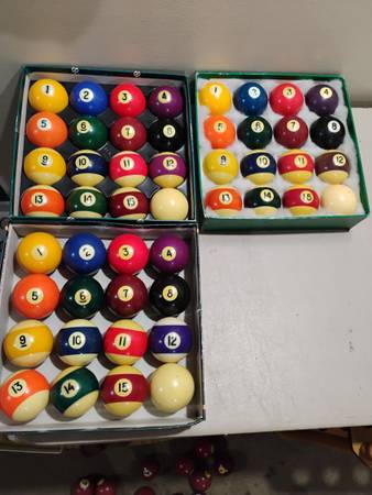 I have some Belgian billiard ball sets, cue stick holders,cone chalk holders ect. If any interest text or call