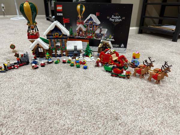 Sets have been displayed in smoke free home and are complete and include box and instructions. Additional mini figures from Holiday advent calendar are included along with a creator set from 2014, along with Santa’s post Office set, sleigh and delivery truck.