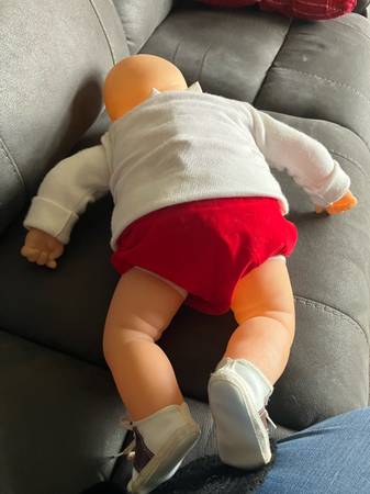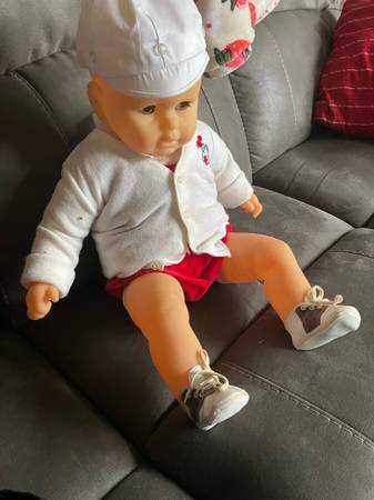 This boy doll is almost perfect condition. He is 22” tall. He has a soft body. He has a plastic head, arms, & legs. He is from a doll collector.