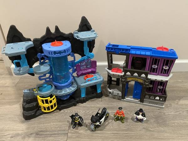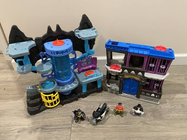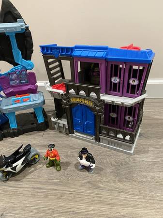 (*.*) IMAGINEXT BATMAN PLAY SET & GOTHAM CITY JAIL 3 Figures ~ Motorcycle Comes with everything in the pictures Pick up 192nd & Harrison area Text