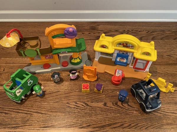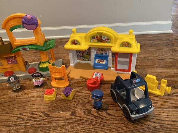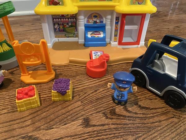 LITTLE PEOPLE MANNERS MARKETPLACE & SUPERMARKET PLUS! Little People Trucks ~ Comes with everything that is pictured Sounds work Pick up 192nd & Harrison area Text