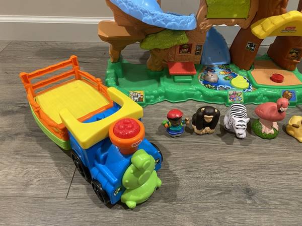 (*.*) LITTLE PEOPLE ZOO TALKERS with ANIMALS & ZOO TRAIN Zoo sounds work with 4 Zoo Talkers Animals 1 Large Talking Elephant Train Excellent Pick up 192nd & Harrison area text