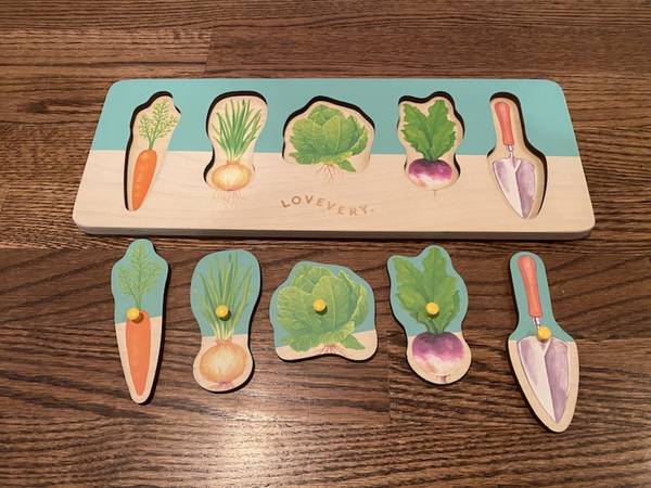 ♥ ♥ ♥ LOVEVERY COMMUNITY GARDEN VEGETABLE WOODEN PUZZLE ~ The Pioneer Play Kit 16-18 months Excellent Condition Check out all the other books I have for sale Pick up 192nd & Harrison area Text