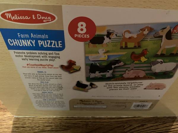♥ ♥ ♥ MELISSA & DOUG LARGE FARM ANIMALS WOODEN CHUNKY PUZZLE Check out all the other puzzles I have for sale Pick up 192nd & Harrison area Text 402-889-504six