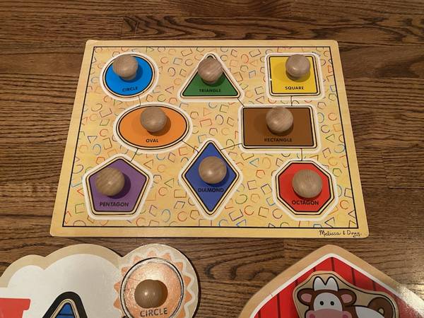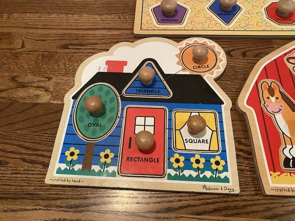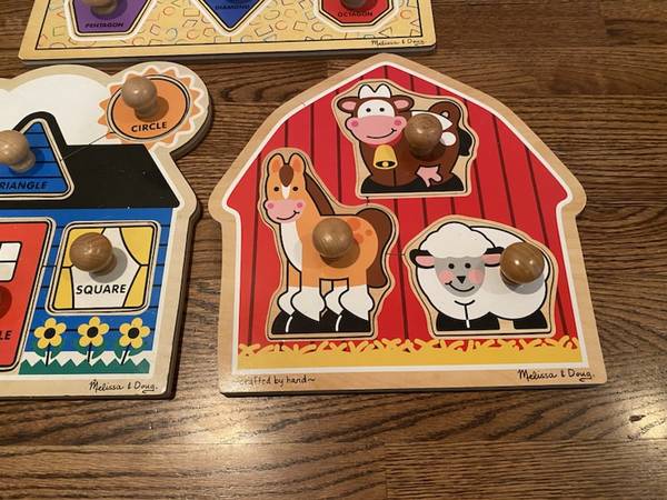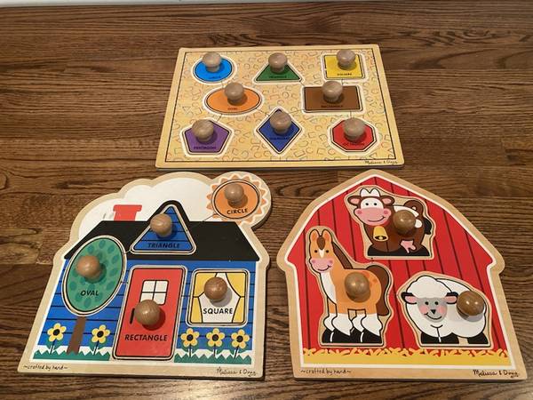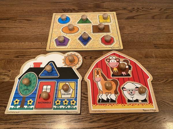 ♥ ♥ ♥ MELISSA & DOUG 3 WOODEN JUMBO KNOB PUZZLES Check out all the other puzzles I have for sale Pick up 192nd & Harrison area Text