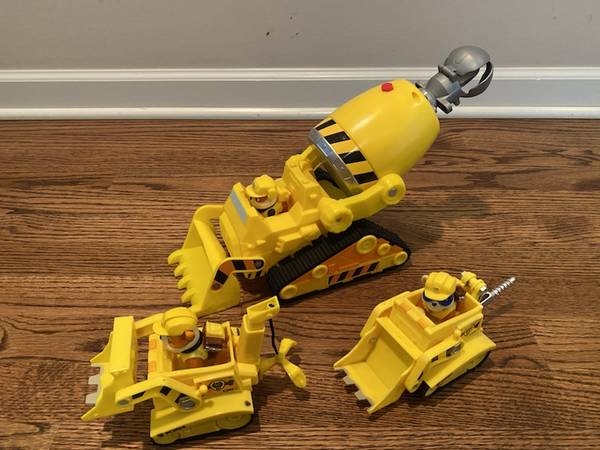 (*-*) PAW PATROL RUMBLE'S DELUXE BULLDOZER VEHICLE WITH FIGURES all 3 vehicles with 3 Figures Comes with everything pictured Pick up 192nd & Harrison area text