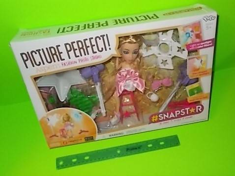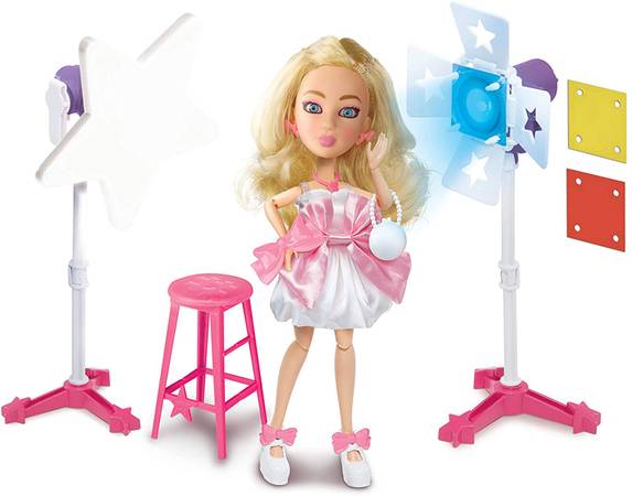 Free downloadable SNAPSTAR STUDIO APP that allows girls to style and customize their SNAPSTAR's hair, make-up, eye color and shape, accessories and background scene. Includes an extra large green screen for group shots!