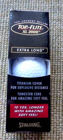 Here is a set of Top Flite XL 2000, Extra Long golf balls made by Spalding. There are 3 balls in each box, a dozen balls in all. They have never been used, but were marked with an "M" in...