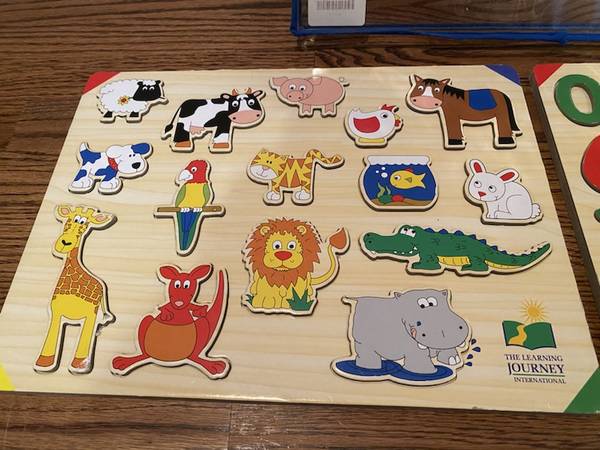 ♥ ♥ ♥ THE LEARNING JOURNEY WOODEN NUMBERS & ANIMAL PUZZLES 2 Pack with carry case Check out all the other puzzles I have for sale Pick up 192nd & Harrison area Text