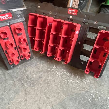 I do not want to break up and sell separately so it is a bundle deal. Like new milwaukee packout wall kit including a large wall plate and small wall plate. Inserts included the following: