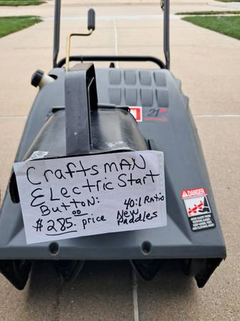 @ Toro 518ZE power clear uses regular. Gas, used 2 times. Very new. $400. Cash sale. Has electric push button start also. Uses regular. Gas. #2 item is Craftsman 5hp. 21 in. Gas with electric start button snowblower. Runs great new rubber paddles too. $285. Cah sale, item#3 John DEERE TSR21 MODEL SNOWBLOWER GAS WITH ELECTRIC START BUTTON. $295.00 CASH SALE NEW RUBBER PADDLES ALSO. #4 ELECTRIC BLACK AND DECKER HEDGE TRIMMER $40.00, #5, Black and decker electric edger $75.00, #6 Electric leaf blower $40.00. Call Bernie at 4,zero,2, five,0,7,7,five,1,nine. To see items. Must verbally call.