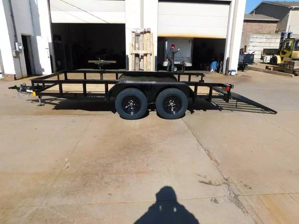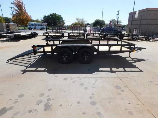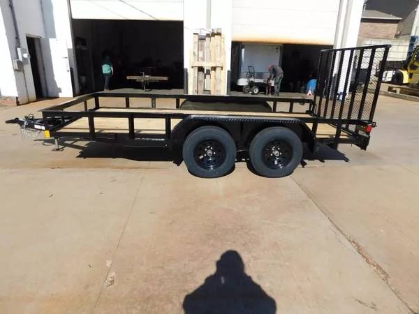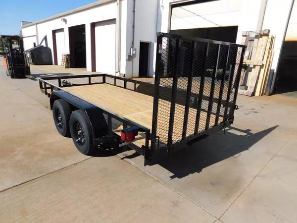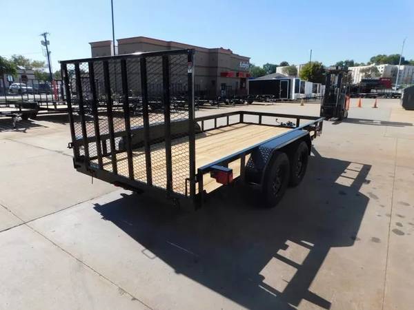 Here you are looking at a New Buck Dandy 77 X 14 Landscape trailer with a Spring assisted tube gate