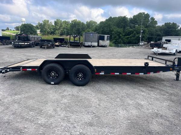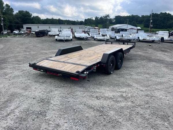 83" x 20' Tandem Axle Carhauler 6" Channel Frame 2 - 7,000 Lb Dexter Spring Axles (2 Elec FSA Brakes) ST235/80 R16 LRE 10 Ply. (BLACK WHEELS) Coupler 2-5/16" Adjustable (4 HOLE) Treated Wood Floor w/2' Dove Tail (Only On 12' & Up) Diamond Plate Fenders (removable) REAR Slide-IN Ramps 5' x 16" (carhauler)(Dove) 16" Cross-Members Jack Spring Loaded Drop Leg 1-10K Lights LED (w/Cold Weather Harness) 4 - D-Rings 4" Weld On Tool Tray Winch Plate (8" Channel) Spare Tire Mount Black (w/Primer) Road Service Program 833-278-3396 for Info.