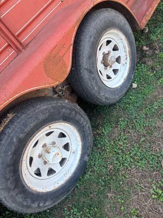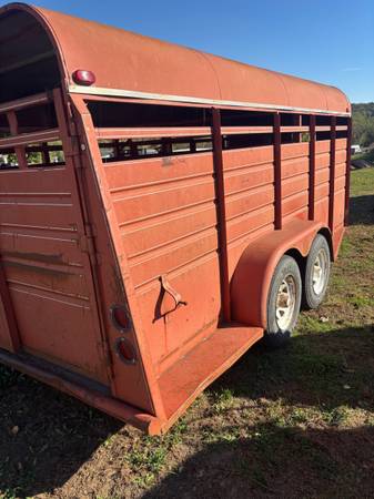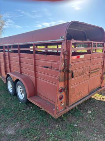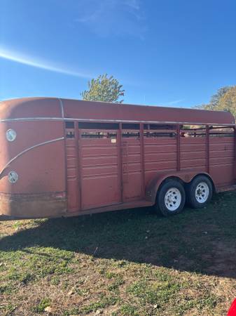 Here is a used bumper pull livestock trailer. I pulled this trailer home no problem. It has good tires on it. I have not tested the lights. The floor is decent. It measures 18ft long. This trailer comes with a registration only. Registered as a 2011 homemade trailer. That is how I got it. You can put a plate on it. Good trailer ready to go. Priced to sell at $2,500
