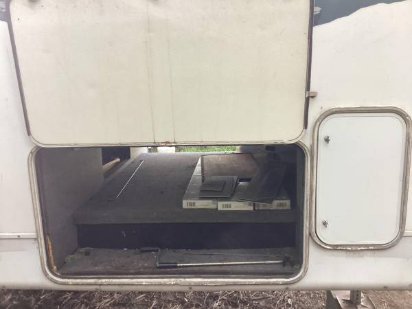 As you walk into the camper you will find 2 custom-ordered, leather Lazy Boy chairs with a small built-in table between them. No stains. Rips, Wear. There is a table with two benches that is only 3 years old. Both bench seats got a small slit in them during our first use (Poor stitching from the manufacturer). We taped them with Gorilla tape and have had no problem since. The unit came with a table and 4 chairs, but they were disgusting, so we put this in for more sleeping area. It makes out to sleep someone 5’6” or less, comfortably or two smaller children. We have also had children or teens sleep happily in the lazy boys. The couch sits very sturdy. It pulls out to a double sized bed to sleep one or two adults. We have a 4” Blue Memory Foam mattress topper in the box under the main bedroom bed, for the sofa sleeper. It looks purple but the brand is BLUE. It makes a world of difference in the comfort level of sleep anyone will get on this mattress and bed set up. There are cupboards and storage galore around the top of the seating and eating area. We assigned one per child, so no suitcases had to come in.