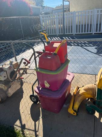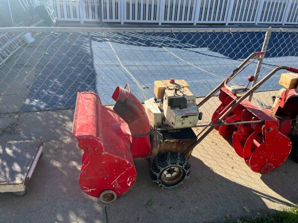 Heavy duty snowblower runs great $100 two wheelbarrows $25 apiece and gas cans call Larry