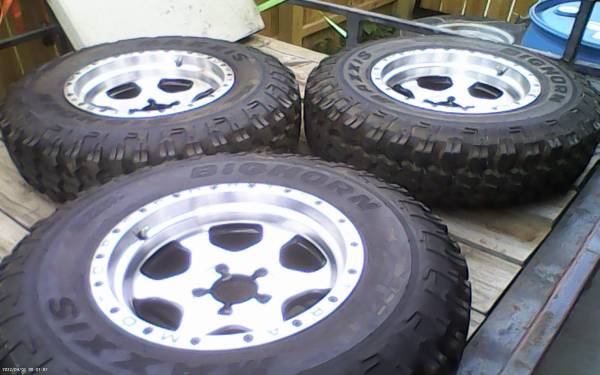 I have a set of 4 big horn maxxis 30x9.5x15 on ultra wheels 15x9. very good condition, with caps. they came off a jeep wrangler will fit other 5x4.5 lug spacing. please call or text after 5pm M-F. Day hours on the weekends.
