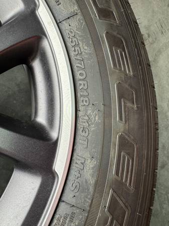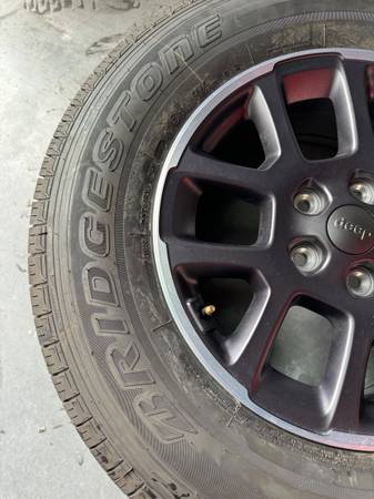 Brand new Jeep Gladiator wheel and tires. Tires are Bridgestone Dueler 255/70/18's and wheels are 18x7. Taken off when vehicle had 200 miles. As new, no damage or issues. Set of 4 wheels AND tires.